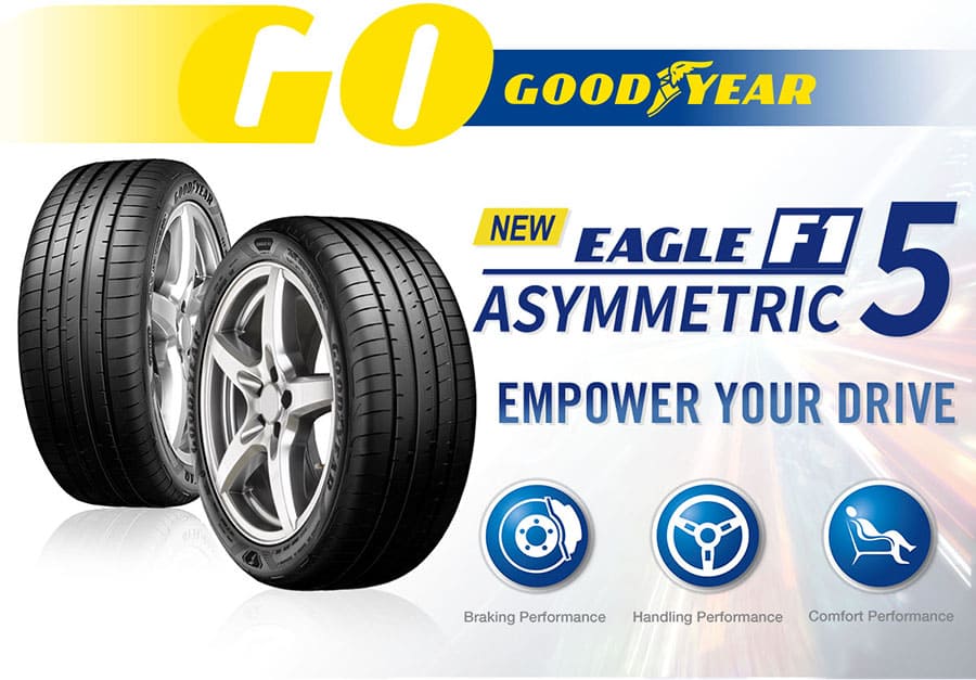 Az Ultra High Performance Eagle F1 Asymmetric 5 abroncsok azoknak a vezetés szerelmeseinek valók, akik a teljesítmény megjelenését, az érzékeny irányíthatóságot és a Z-sebességű (vagy magasabb) tartósságot, valamint az egész évszakos tapadást, még enyhe hóban is szeretnék kombinálni. Az M+S szimbólummal ellátott Ultra High Performance abroncsokat gyakran használják eredeti felszerelésként (OE) a sportautókon, a nagy teljesítményű kupékon és a nagy teljesítményű szedánokon.