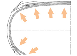 A gumiabroncs belső szerkezetének kialakítása lehetővé teszi az érintkezési feszültség optimális eloszlását, ami növeli a kényelmet és csökkenti a gördülési ellenállást.